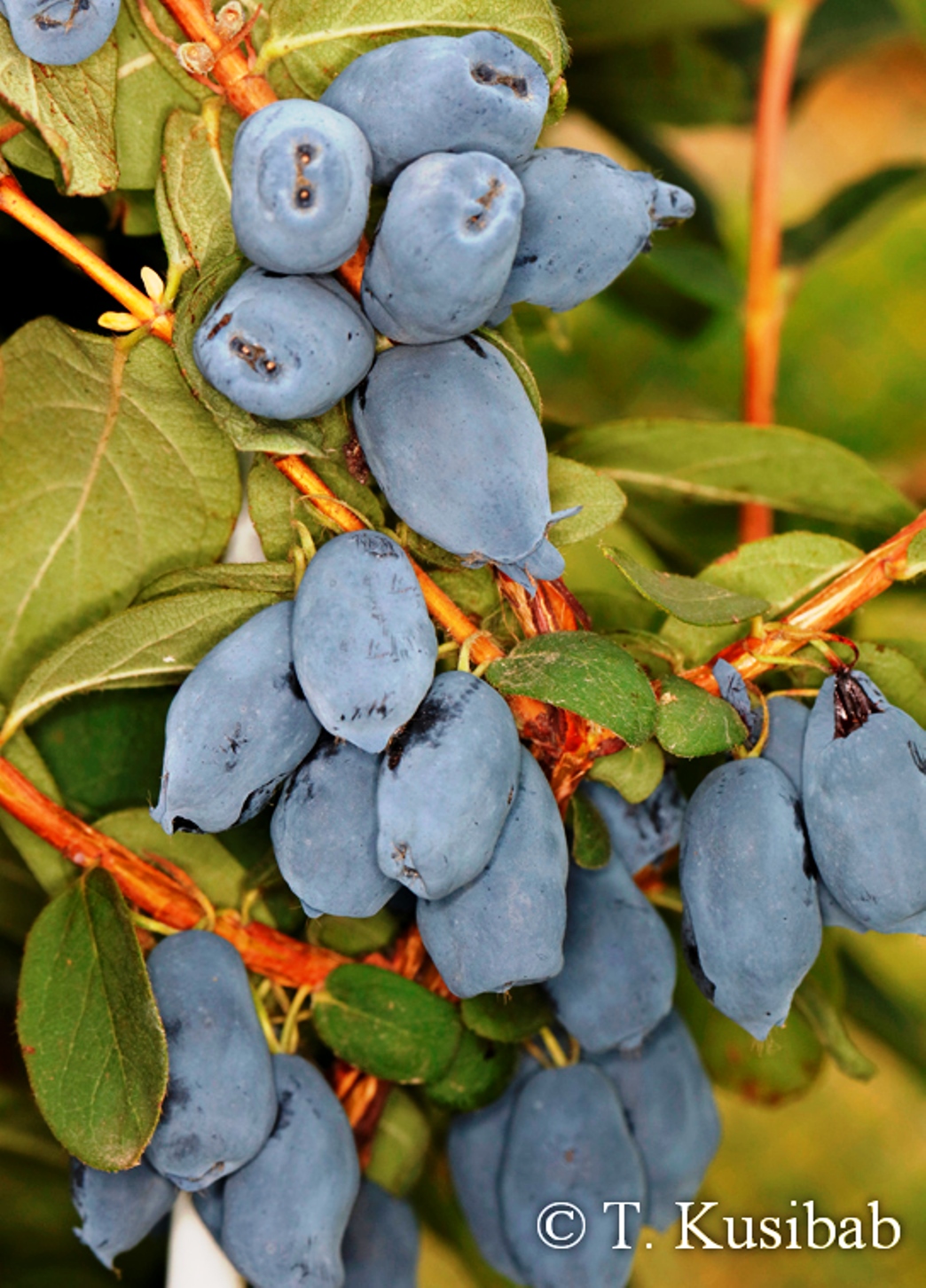 Форма плодов – широкоовальная, слегка сплюснутая по бокам (напоминает толстое сердце или толстый овал). Цвет ягод – черно-фиолетовый, с более светлой, плотной и мясистой мякотью внутри. Полностью созревшие плоды обладают изысканным сладко-кислым вкусом, с легким фруктовым привкусом и необычным для стандартной жимолости ароматом. Все они плотно удерживаются на плодоножках и даже после опадания листья могут оставаться на кусте, что значительно продлевает срок потребления вкусной и полезной продукции.