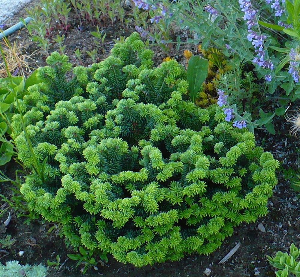 Ее компактная форма хорошо сочетается с другими низкорослыми хвойными и лиственными растениями.