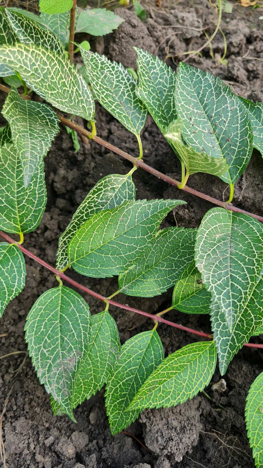 Кустарник высотой до 2-3 метров и 2 м в диаметре. Главное его особенностью выступает наличие белесых прожилок на листве.