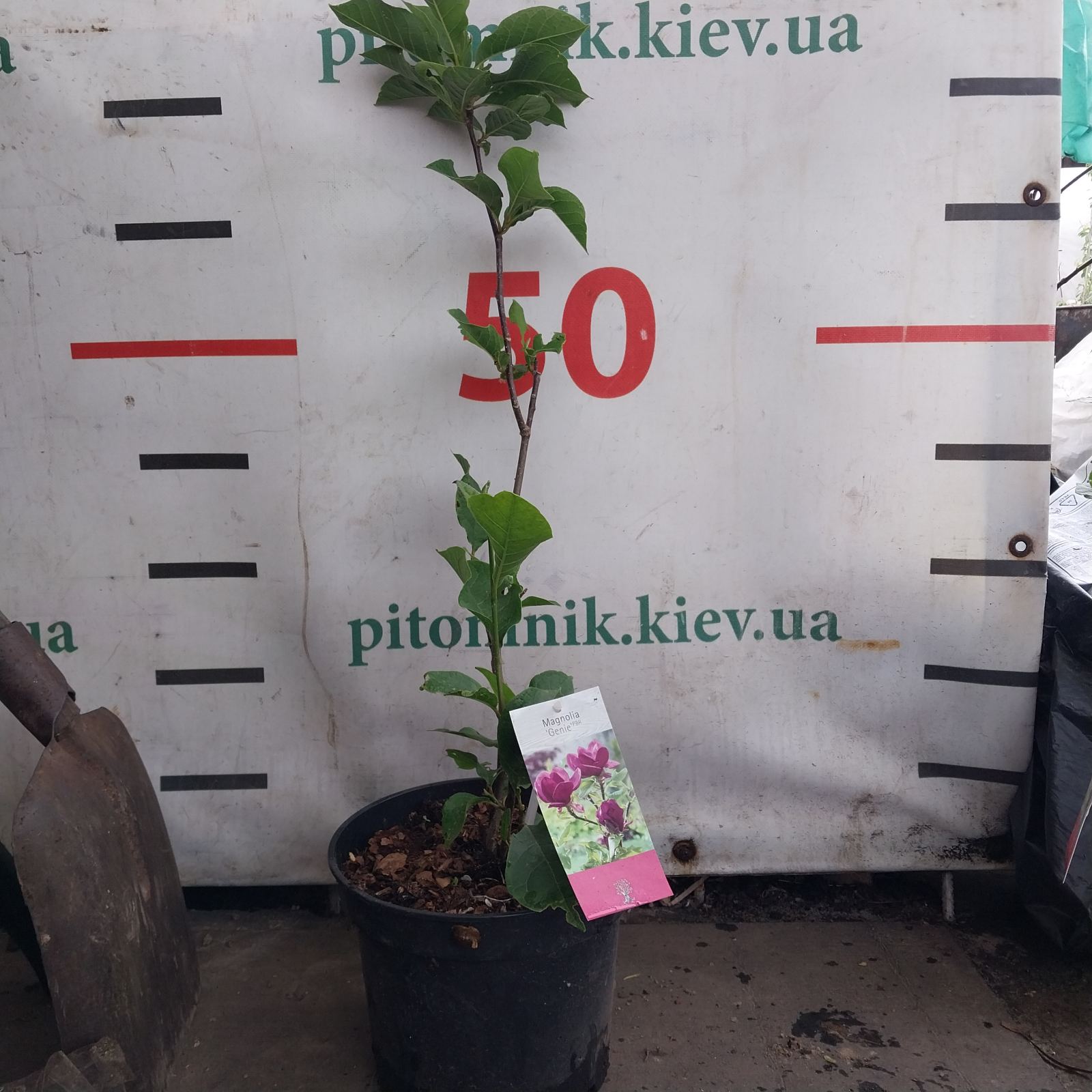 Выведенный в Новой Зеландии, этот сорт магнолии, пожалуй, самый морозоустойчивый из всех тёмноокрашенных сортов магнолий. Компактная и ветвистая магнолия Джени станет настоящим украшением даже самого небольшого сада. Высота около 3 м в высоту и 1.5 м в ширину делает магнолию идеальной для садов любого размера. Черно-красный, в форме тюльпана бутон медленно раскрывается в округлые цветы с 6-12 лепестками и диаметром около 15 см .Предпочитает солнечные и защищенные от ветра места. Этот сорт магнолии-оптимальный вариант для садов небольшого размера. Выдерживает морозы до -34С.