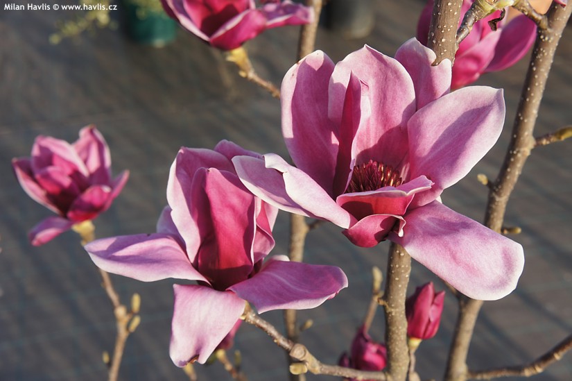 Великолепный сорт магнолии из Новой Зеландии. Это скрещивание M. denudata x Vulcan. Результатом является обилие ярких бордово-красных цветов с более бледной внутренней частью. Они ароматны и распускаются вдоль строго вертикальных ветвей, как закрытые тюльпаны, широко раскрываясь через неделю или позже, приобретая хорошую форму.