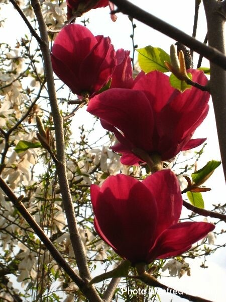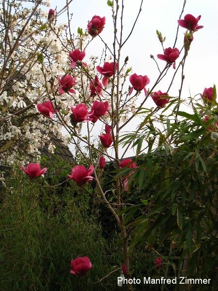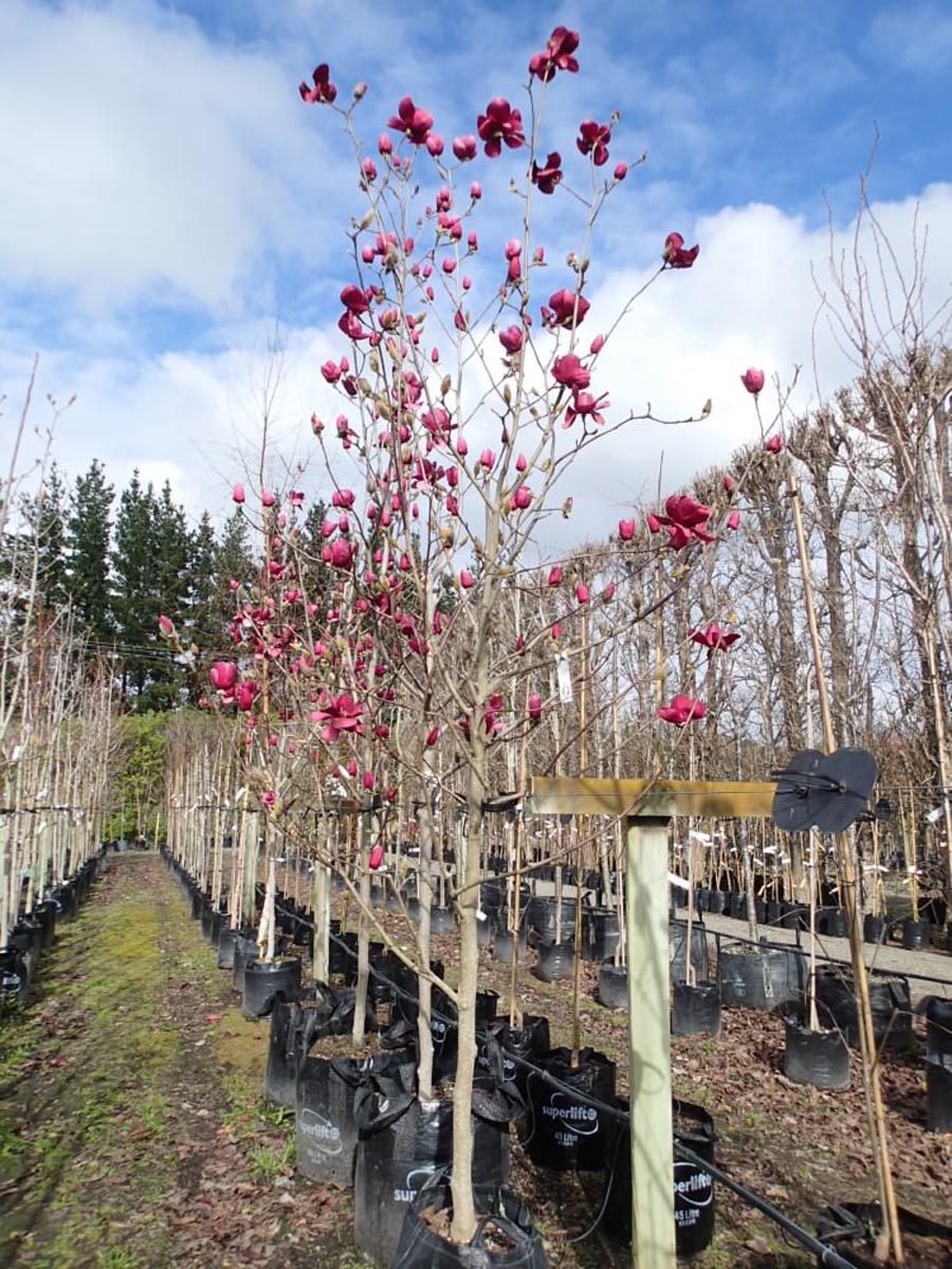 Цветы могут достигать 20 см в ширину и иметь 12 листочков. Магнолия Ian's Red обильно цветет с раннего возраста.