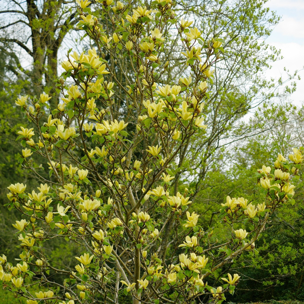 Magnolia Sunsation — одна из самых эффектных современных магнолий с редкой желто-зеленой окраской лепестков. Выведенная американскими селекционерами, она совмещает декоративность, относительную компактность и стойкость к холоду. Цветы имеют элегантную форму, похожую на тюльпан, и достигают 15-18 см в диаметре. Благодаря легкому розовому оттенку у основания лепестков создается впечатление тепла и глубины.