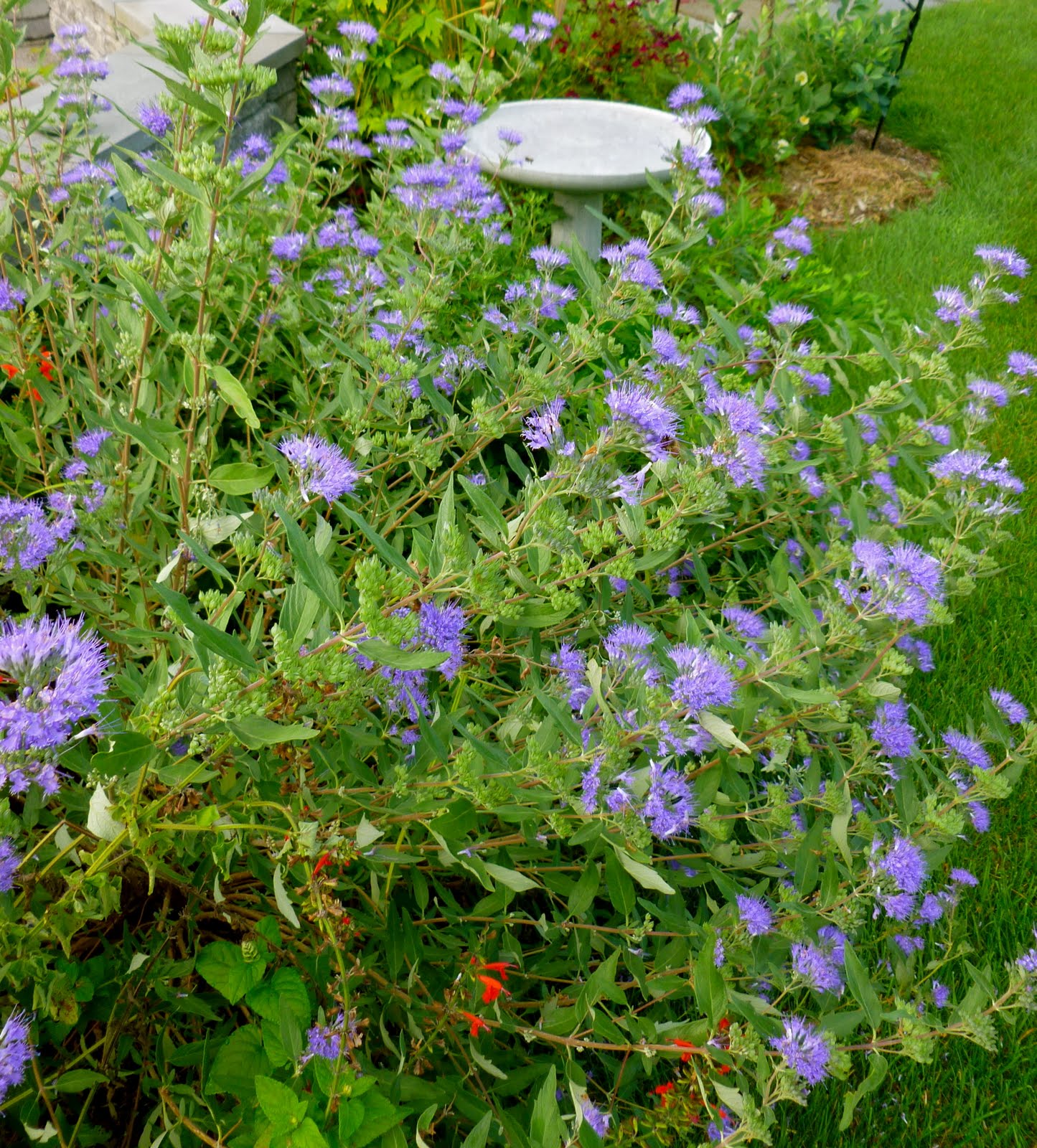 Цветет густо и обильно в конце лета и до заморозков. Высота и ширина куста от 1 до 1,5 метров, имеет сферическую или полусферическую форму. Во время цветения куст становится ярко синего цвета.