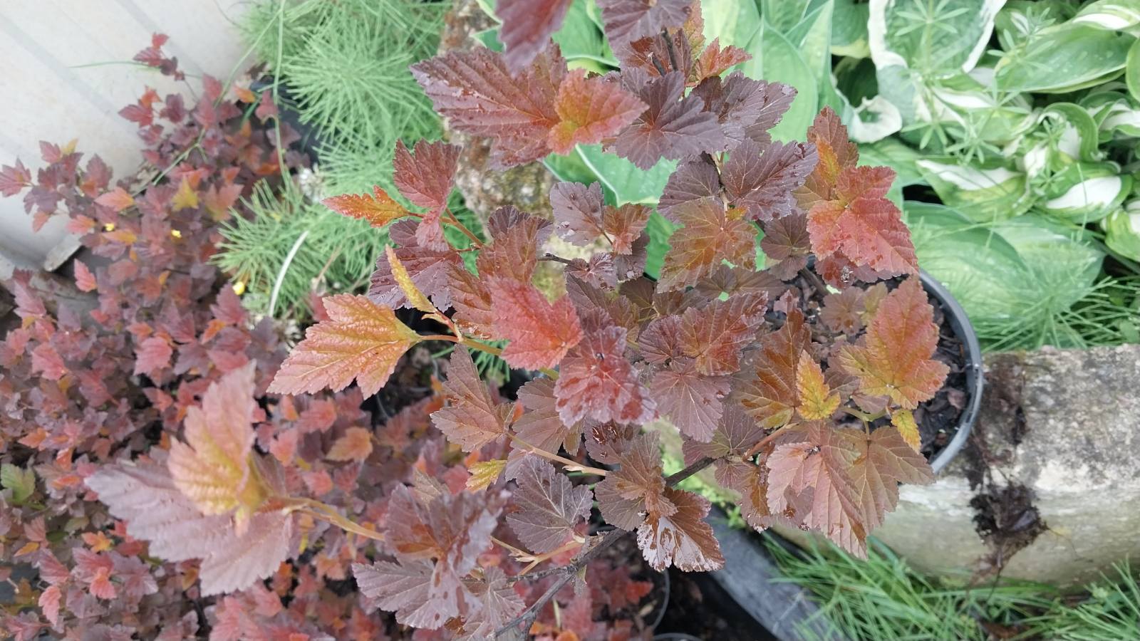 Листья: трехлопастная, насыщенно бордовая или темно-красная с весны до осени. Цвет не теряет интенсивности даже на солнце.