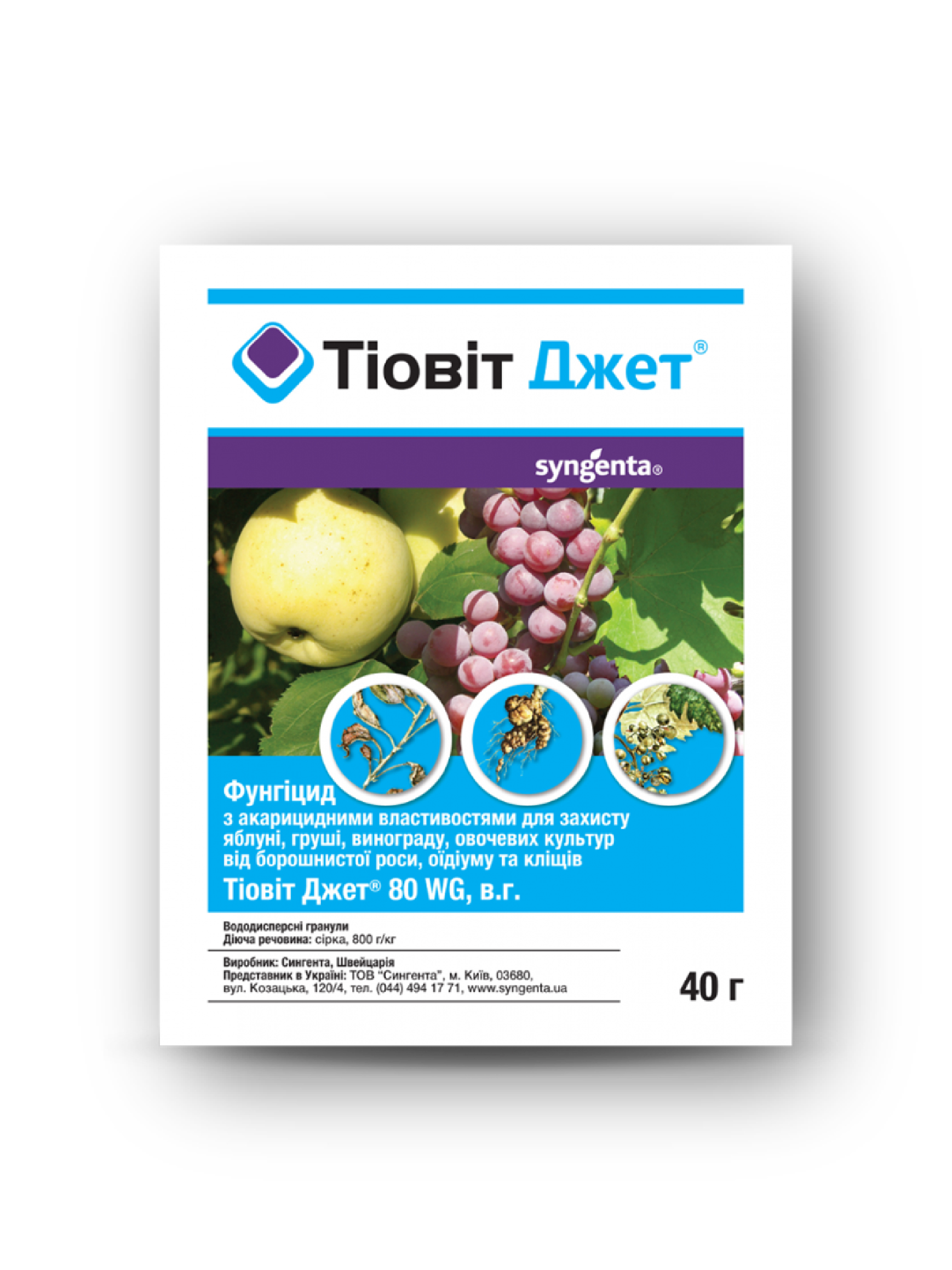СУМІСНІСТЬ. Не використовуйте Тіовіт Джет® раніше ніж через 14 днів після застосування препаратів на олійній основі! Не проводьте обробки по вологому листю! При змішуванні з фосфорорганічними препаратами слід неодмінно перевіряти на сумісність. Не робити суміші з добривами. Не застосовувати в період посухи. Припиніть обробку до того, як плоди почнуть набирати характерного забарвлення! Побічна дія на кліщів (при нормі 80 г на 10 л води). При температурі вище ніж 25 °С слід використовувати мінімальну норму витрати препарату.
