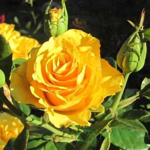 Желтая роза Керио, благодаря основным характеристикам, является одной из лучших для использования в букетных композициях. Она встречается практически в каждом цветочном магазине, благодаря своей внешней привлекательности и способностью долго сохранять товарный внешний вид. Основные характеристики розы: прямостоячие стебли, не превышающие 70 см в высоту; ширина куста около 60 см; среднее количество шипов; глянцевые темно-зеленые листья среднего размера; одноцветковые стебли (иногда возможно появлений соцветий из 3-4 цветов); цветки махровые, крупные, достигающие в диаметре 13 см, но средняя их ширина – 9 см; расцветка ярко-желтая с тонкой оранжевой каемкой по краю лепестков.