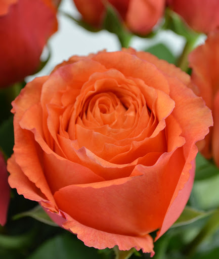Оранжевая красочная роза из Республики Эквадор непревзойденно смотрится и в миксах разных стилей и в современных простых букетах, где акцент делается на истинную красоту бутона.