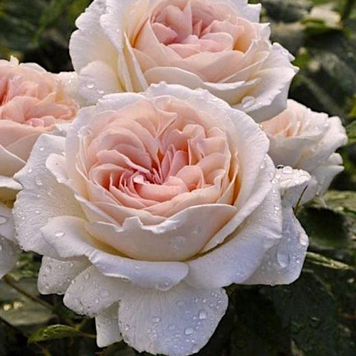 Цветки кремово-белые, в центре желтовато-розовые; крупные, диаметром 11см, очень густо махровые, квадратные, в соцветиях-зонтиках, с сильным, сладостным пьянящим ароматом.