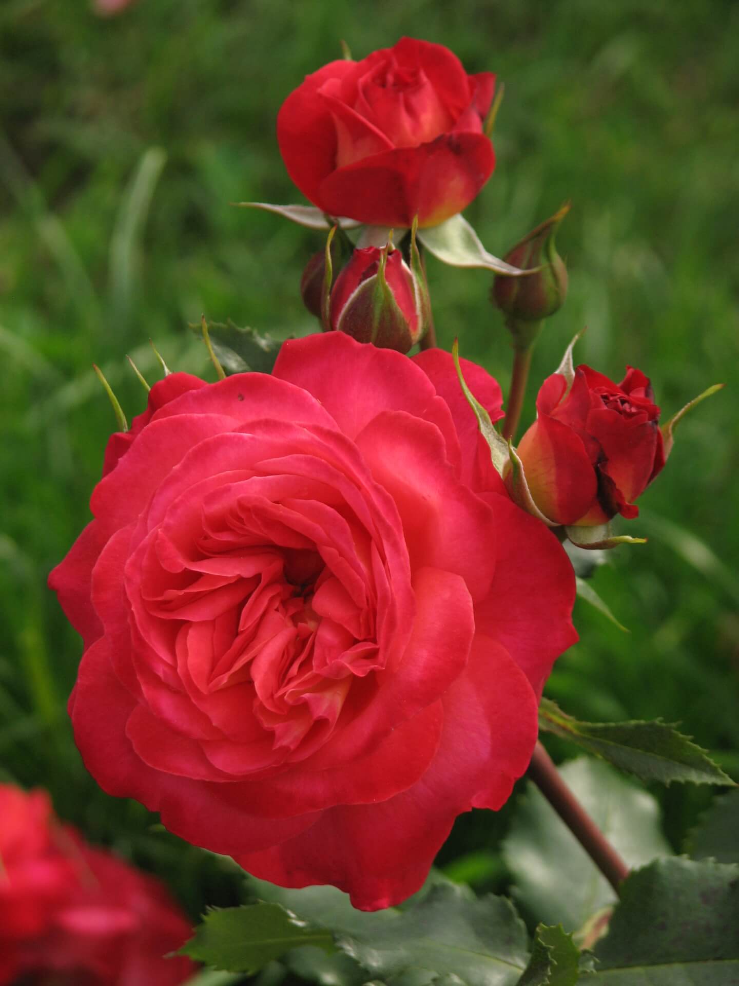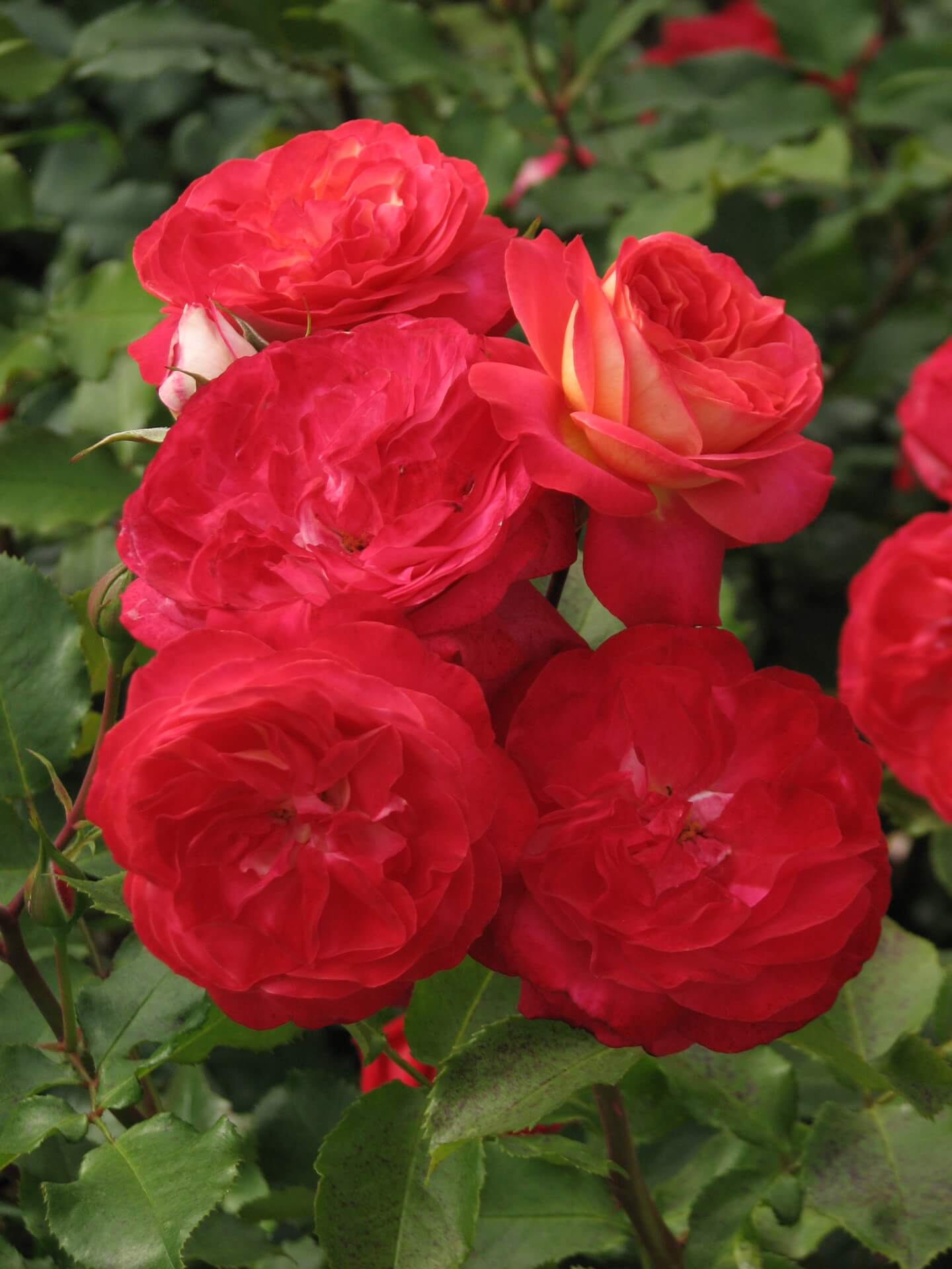 Дословный перевод названия сорта с английского языка – «середина лета». Именно в этот период на кустарнике появляются самые пышные и яркие цветы многослойной окраски. Цветет несколько раз за сезон с небольшими перерывами.