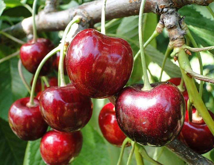 Плоды средние, вес 6,5 г, сердцевидной формы, темно–красного цвета. Плодоносит очень хорошо, каждый год. Плоды созревают в середине июля, очень вкусные, транспортабельные, мякоть полутвердая сочная. Сорт устойчив к болезням, мороз переносит достаточно хорошо, нужен опылитель.