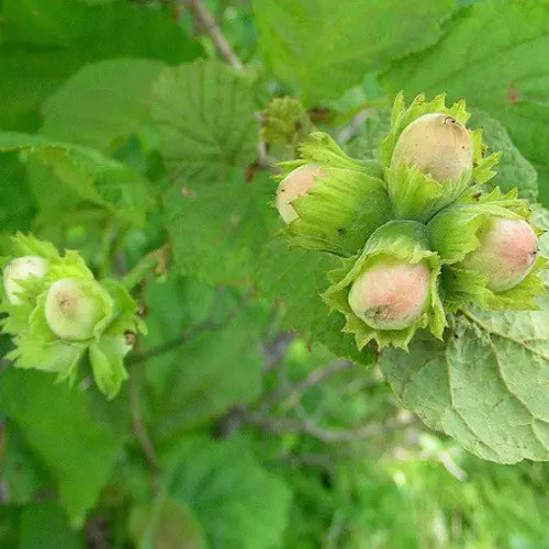 Гроздь включает в себя до 8 орешков. Вес ореха до 3 грамм. Длина – 2 см. Форма – круглая с характерным обострением вверх.