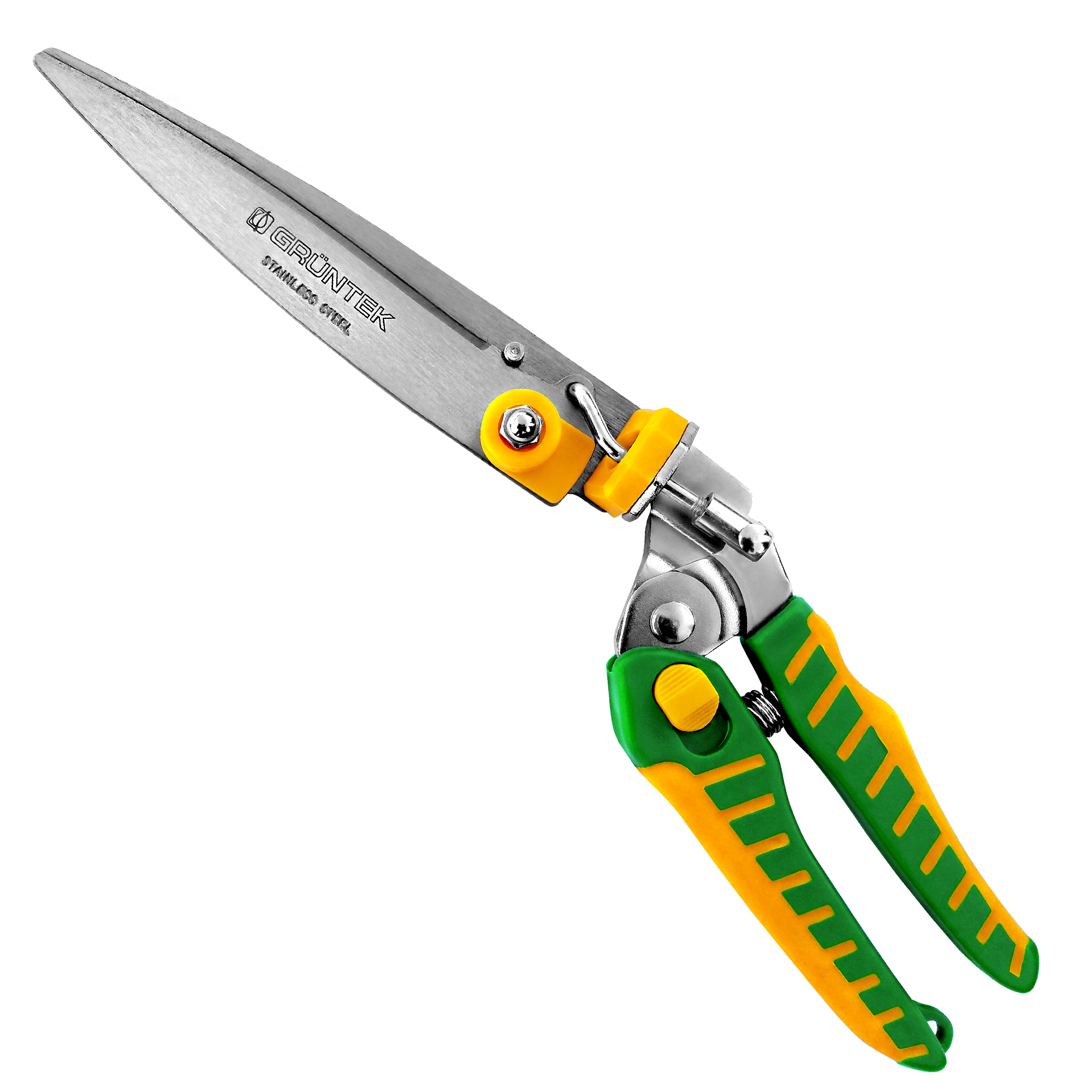 Довжина леза - 140мм Рекомендовано для стрижки газонної трави Леза з нержавіючої сталі. Поворотна головка на 180° Пластикові рукоятки з м'якою гумовою накладкою