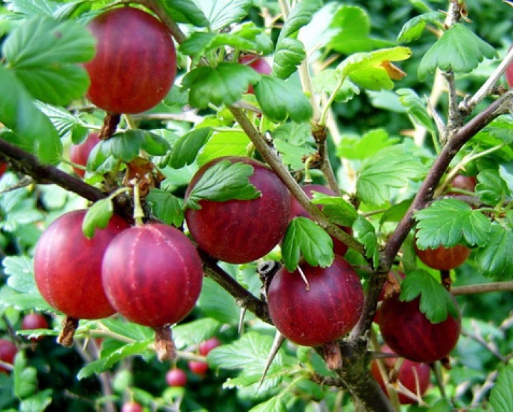 Хіннонмакі агрус середньо-пізнього дозрівання, ягоди темно-червоного кольору, великі, смачні, сорт скороплідний, високоврожайний, адаптований до різних грунтів, стійкий до хвороб, колючий