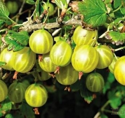 Ягоди великі (5,0-6,7 г), одновимірні, округло-овальні, жовтувато-зелені. Насіння велике. Смак кисло-солодкий, десертний, оцінка 4,5 балу. Чашка овальна, велика, закрита. Плодоніжка довга, пряма. Хімічний склад ягід : розчинні сухі речовини -11,0%, сумма цукрів - 7,7%, титруемая кислотність - 2,7%, аскорбиновая кислота - 23,0 мг/100 р.