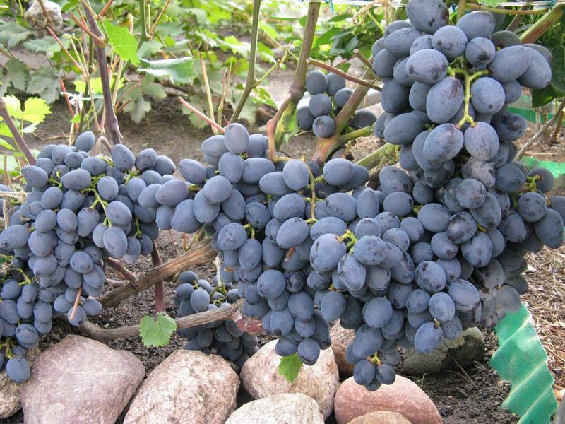 Кущі дуже сильнорослі з великим листям і добре визріваючою лозою. Квітки двостатеві. Грона великі, середня маса складає 500-900 г, але окремі можуть досягати 2 кг Форма конічна або цилиндроконічна. Горошення ягід відсутній. Ягоди овальні, великі, синього кольору, масою 7-9 г (до 12 г). Смак гармонійний, м'якуш м'ясистий. Кислотність 6,8 г/л, цукристість 16,5/p>