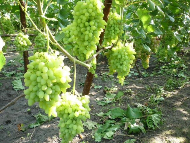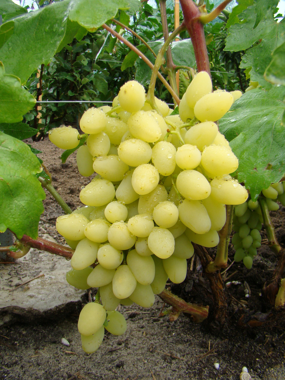 Грона великі, 0,7-1,5 кг, конічні, середньоплотні, не схильні до горошіння, красиві. Ягоди великі, 8-10 г, овальні, жовтого кольору. Смак приємний, з гармонійним поєднанням цукристості і кислотності. М'якуш щільний, шкірка з'їдається.