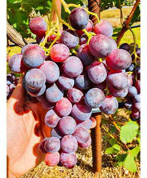 Термін дозрівання ранній (110-120 днів). Сила росту висока. Грона великі, середньою масою 600-800 г, циліндроконічної форми. Ягоди великі, овальні, темно-червоного кольору, середньою масою 4-5 г. Смак гармонійний, солодкий, з легким мускатним відтінком. Безнасінність клас III (рудименти кісточок практично відсутні).