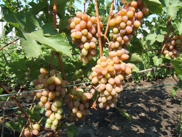 Ягоди великі, 25 x 22 мм, 6-7 г, овальні, рожеві, на сонячній стороні більш інтенсивного забарвлення. М'якоть м'ясисто-соковита, приємного оригінального смаку. Цукристість 15-16%. Шкірочка середньої щільності. Визрівання пагонів хороше. Виноград добре плодоносить і при короткій обрізці на 2-4 вічка, вимагає нормування врожаю. Транспортабельність середня. Сорт стійкий до мілдью, підвищена стійкість до морозу.