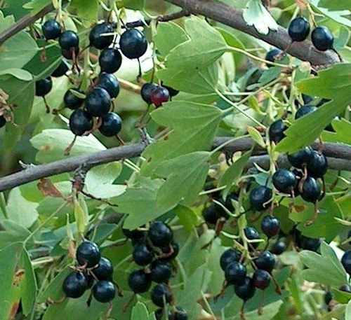 Смородина золотистая Подарок Ариадне – куст высотой до 2 метров, не поражается вредителями и болезнями. Цветёт золотисто-жёлтыми цветами, плоды чёрные, блестящие, вкус ягод кисло-сладкий, хороший. Урожайность высокая. Эту смородину часто называют "гибридной". Но это не так.