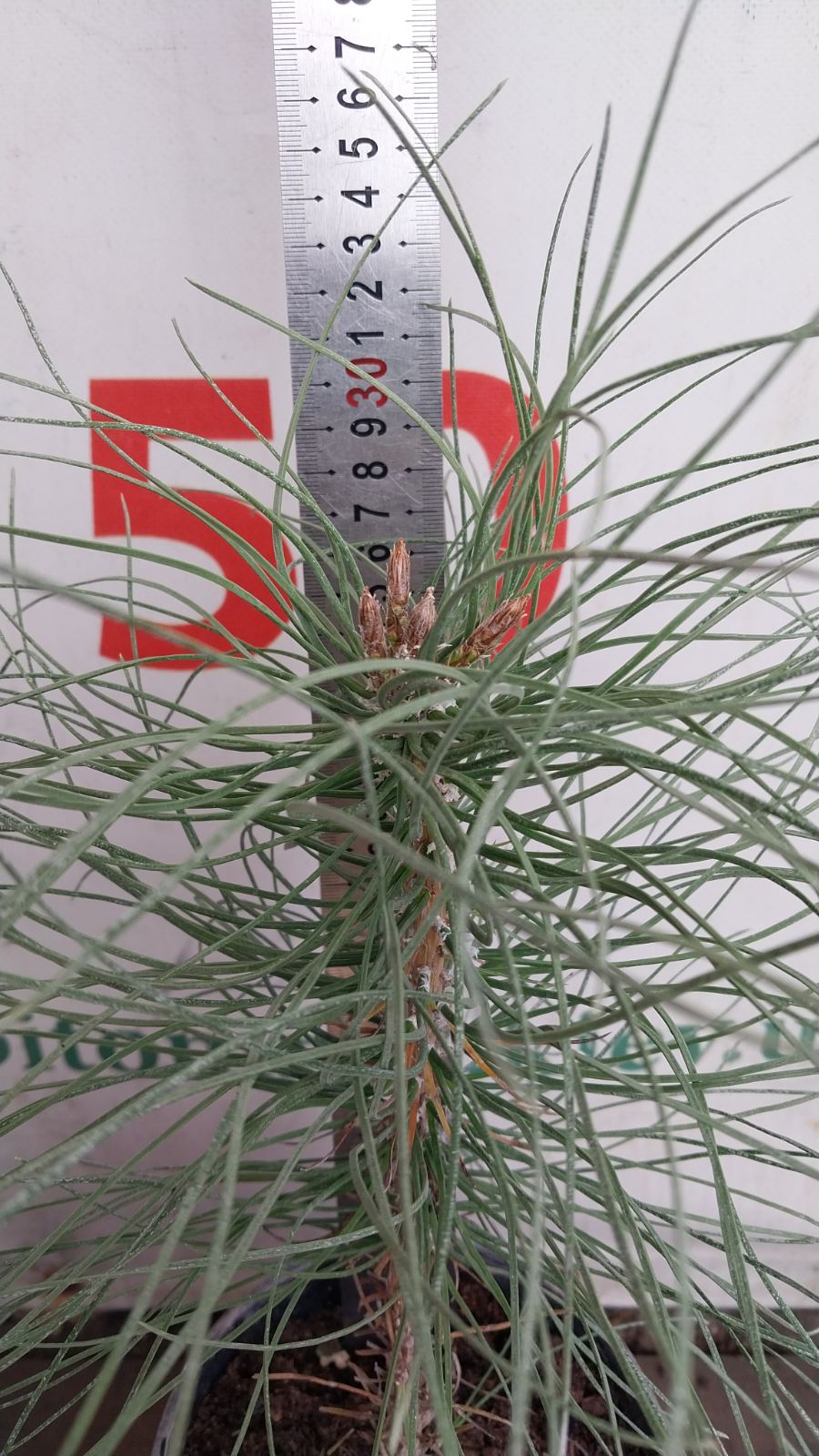 Хвоя довга до 18см, у пучках по дві штуки, темно-зелена, щільна, колюча, злегка вигнута.