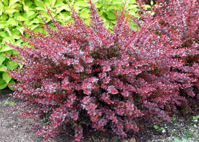 Досягає висоти 1,5м. І стільки ж в ширину. Листопадний чагарник з добре розгалуженою кроною. Гілки з трохи пониклими кінцями, завдяки цьому зовнішній вигляд рослини нагадує фонтан. Молоді пагони пофарбовані в червоний колір. Листя забарвлене в темний малиново-рожевий колір з біло-сірими нерівномірними цятками, як на мармурі.