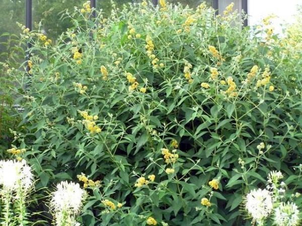 Квітки жовто-жовтогарячі, зібрані в суцвіття довжиною до 20см., Цвітуть з червня по жовтень. Швидко зростаючий чагарник вільної форми, виростає висоти 2 м. Пагони злегка дугоподібні.