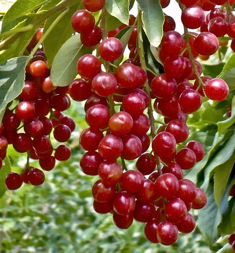 Велика черемха розміром з вишню. Дерева або кущі до 4 м. Потрібен обпилювач.
