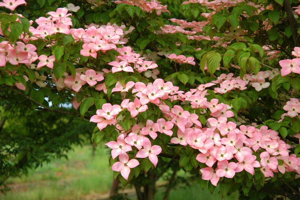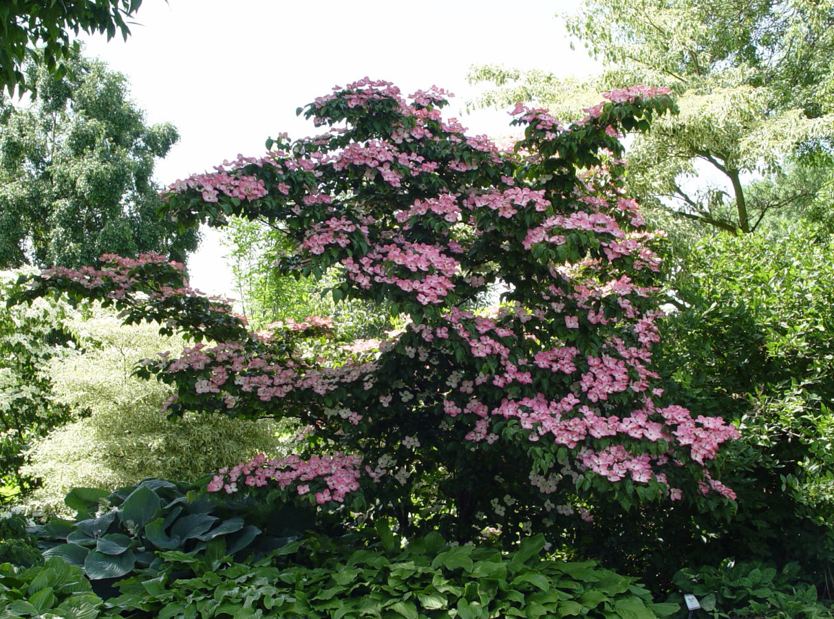 Cornus kousa ‘Satomi’ — унікальний сорт, виведений у Японії, який став улюбленцем ландшафтних дизайнерів у всьому світі завдяки вражаючому рожевому цвітінню та елегантній формі крони.