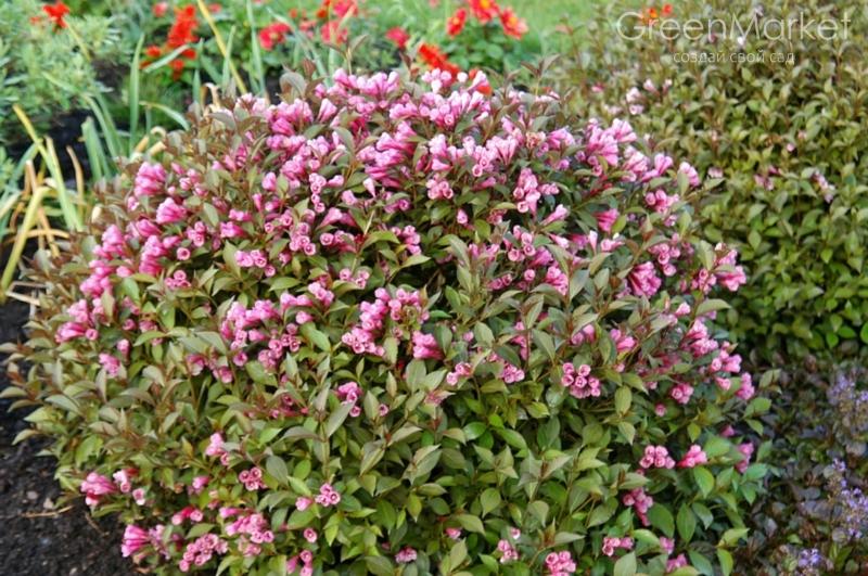 Вейгела чудово переносить міські умови та підходить для живоплотів, міксбордерів і сольних посадок.