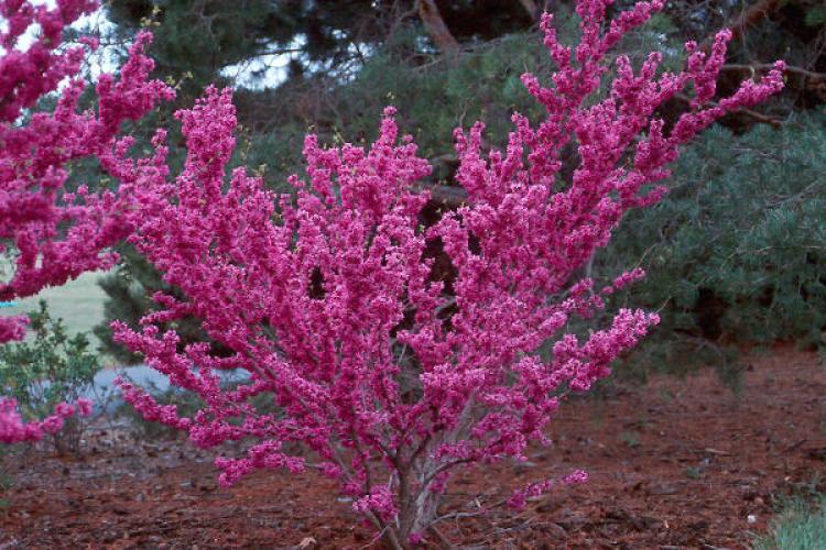 Багряник звичайний (європейський), церцис або "дерево Іуди" - сильнорозгалужене дерево або кущі з широкою кроною, з червонястими гілками і серцеподібним, зеленим листям. У пору цвітіння повністю спростовують видову назву незвичайною яскравою красою.