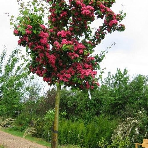 В наявності звичайні кущі глоду Пол Скарлет (не штамб). Глід середній Пол Скарлет приголомшливо красивий під час цвітіння. У травні увесь кущ усипаний дрібними махровими темно-рожевими квіточками, зібраними в зонтиковидні суцвіття. До вересня дозрівають плоди - червоні, маленькі округлі ягоди.