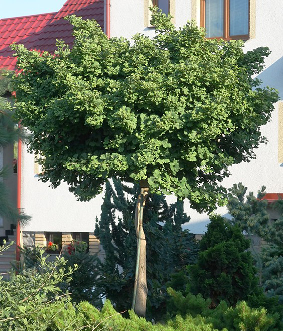 Київський розсадник садових рослин в Києві пропонує купити саджанці гінкго - прадавньої деревної рослини на землі, що має велике трикутне листя завдовжки до 7 см Влітку дерево на ділянці блищатиме яскраво-зеленим листям, а осінню - золотисто-жовтою.