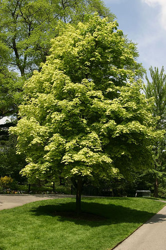 Добре всім знайомий з дитинства клен, з його красивим різьбленим листям, яке осінь розфарбовує у всілякі відтінки червоного і жовтого кольорів, може стати відмінним контрастом звичайним зеленолистовим деревам у будь-якому саду або парку.