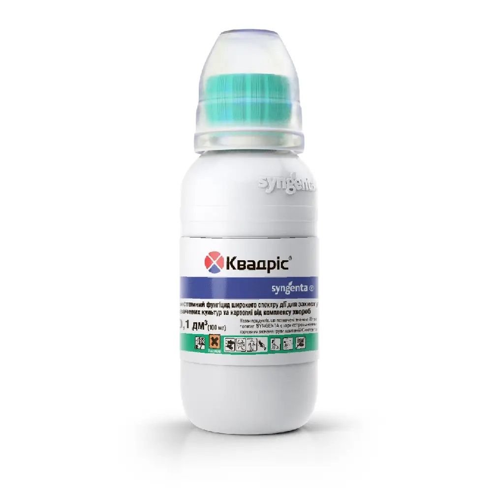 Фунгіцид Квадріс 250 SC к.с. 100 мл - новий фунгіцид компанії Syngenta, що представляє новий клас препаратів - стробілуринів. Квадріс поєднує трансламінарну властивість з системною, профілактичною, лікувальною та викорінювальною дією.