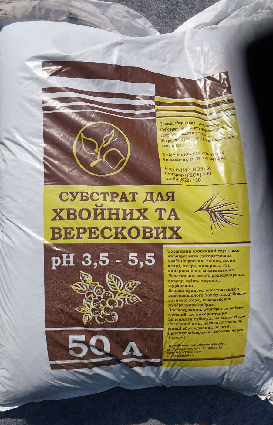 Субстрат для хвойних та верескових рослин — 50л, pH 3.5–5.5