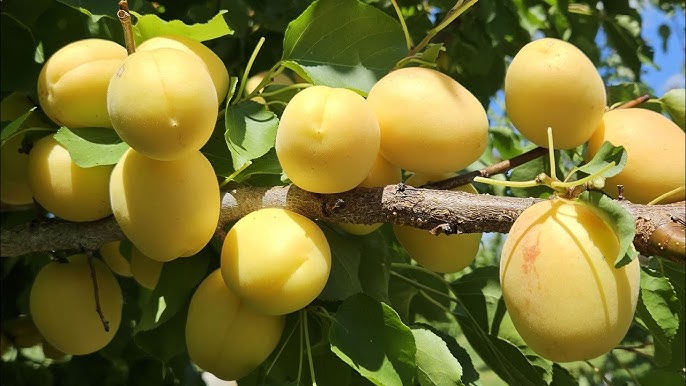 Цінується за незвичайні і дуже смачні плоди, які дозрівають в липні. Плоди мають подовжену форму, світло-жовтий колір, іноді можуть бути червоні крапочки. М'якоть насиченого світло-жовтого кольору, з жовто-гарячим відтінком, дуже соковита і солодка, середньої щільності.