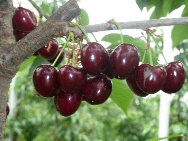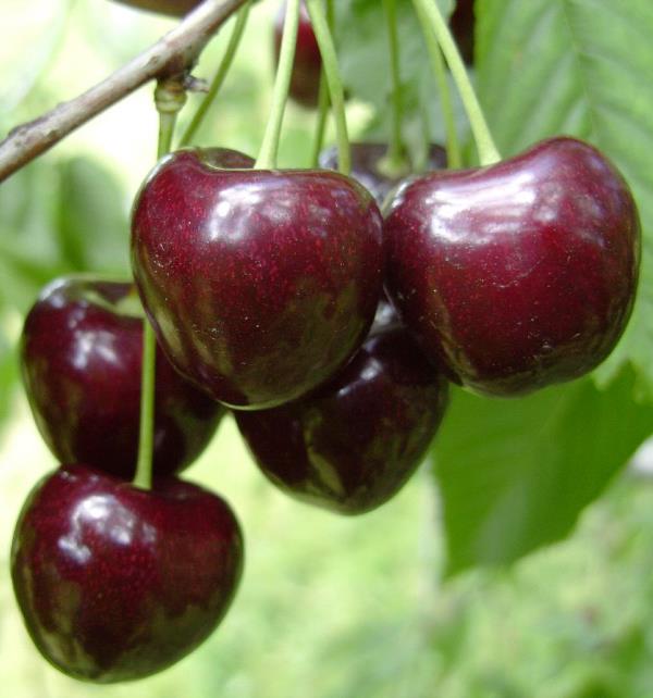Характеристика плоду : Плід великий, 8-10г., серцеподібний, розширений. Шкірка карміново-червона, з коричневими точками. М'якуш твердий, червоний, при повному дозріванні темно-червона, ароматна, смачна. Кісточка велика. Плодоніжка груба, близько 45 мм.