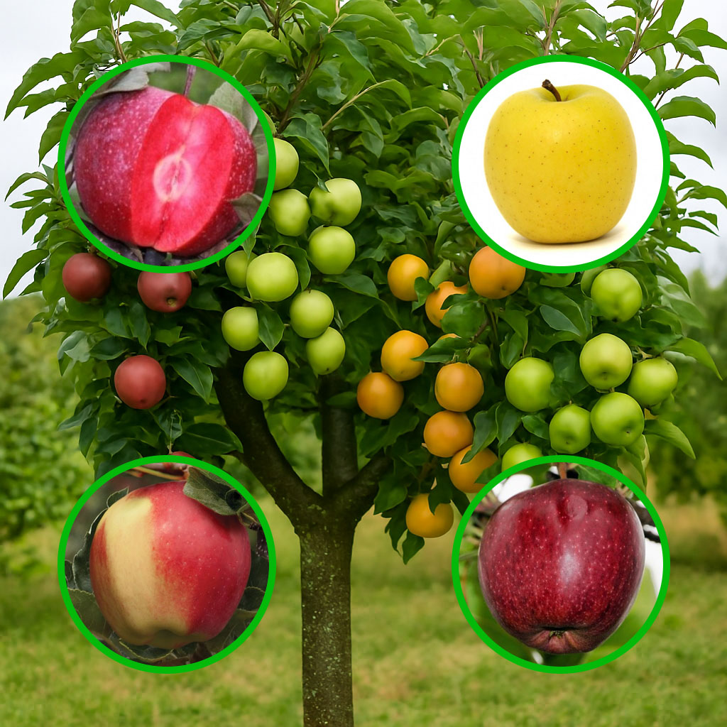 Багатосортова яблуня: Байя Маріса, Голден Делішес, Галмак, Чорний Принц
