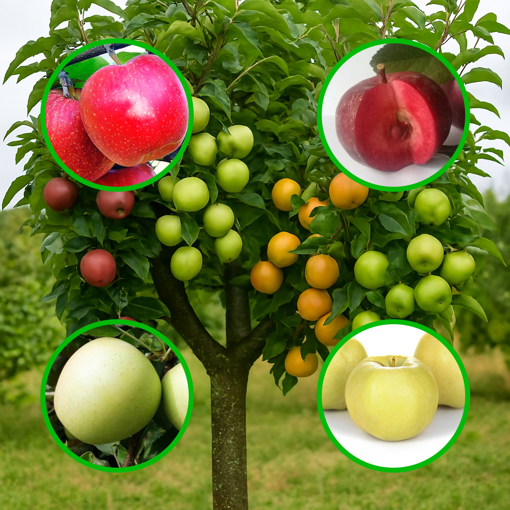 Багатосортова яблуня: Гала Шніга, Байя Маріса, Сніговий Кальвіль, Антонівка