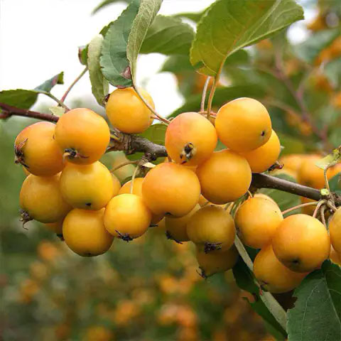 Плоды округлые или слегка сплюснутые до 40 г желто-золотистого цвета с янтарно-красным румянцем.