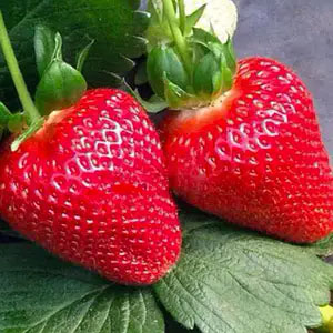 Плоди садової суниці оранжево-червоні, блискучі, ідеальної ширококонічної форми. Вага ягід середня – 18-20 гр., хоча перші ягоди частіше більші за наступні і можуть досягати – 30-35 гр.