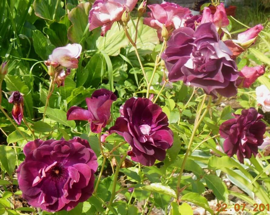 Повторноквітнуча, то є цвіте кілька разів за сезон з невеликими перервами. Чудовий колір. Дивовижні переливання сливового, бурякового у бархатистій фактурі. Не вигорають.< Гілки до 1,5 метрів. Кущ рихлий, як би прозорий, повітряний. Квітки ніжні, напівмахрові, показують серединку. У полуденні години потрібна тінь від дерев або будов, щоб не так швидко розкривалися квітки.