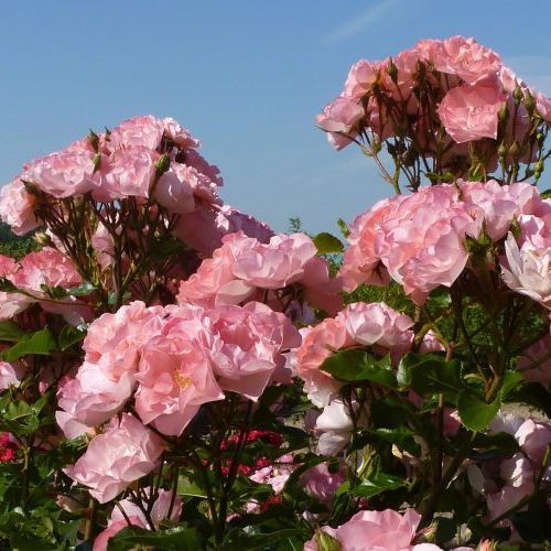 Квіти напівмахрові, всіляких відтінків рожевого кольору, зібрані у великі кисті до 80 шт., Злегка ароматні. Безперервно квітуча від червня до жовтня троянда. Розміри куща заввишки 100-180, ширину - 150-250 см.