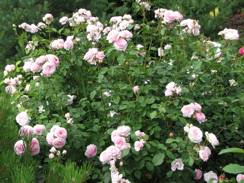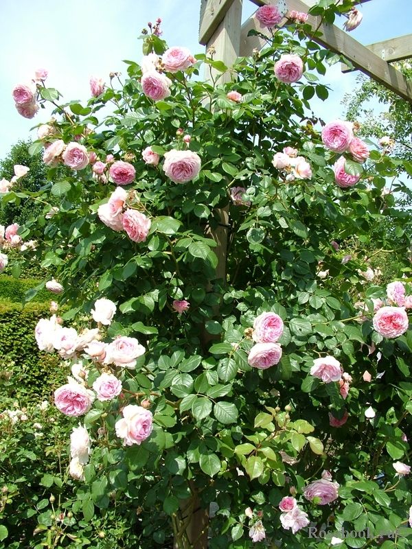 Досягає 2,4 м. Квітки великі (до 15см. в діаметрі) густомахрові, розетковидної форми, тепло-рожеві. Дуже стійкий до захворювань, рясно цвіте повторно.