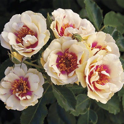 Сорт троянди Bull's Eye в перекладі Прямо в мету селекції Peter Jame, став кульмінацією зусиль які нарешті уразили ціль по гібридизації сорту з великим оком в центрі квітки. Зона ока надзвичайно нового, журавлинного червоного кольору підкреслює основу кожної кремової білої пелюстки цієї напівмахрової троянди.