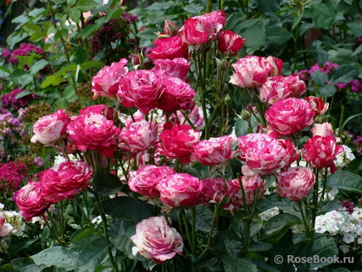 Ці троянди мають невисокий кущ (близько 70см. ), на якому розташовуються великі квітки (діаметр складає приблизно 10см. ). Форма квітки прекрасно виглядає і у бутоні, і в напіврозкритому стані, і в повністю розбещеному виді. Квіти махрові, налічують приблизно 35 пелюсток. Квітка відноситься до представників біколора - в нім поєднуються червоні (чи малинові) і білі смуги. Якщо саджанці троянд посадити у відкритий грунт, це поєднання забарвлень буде більше насиченим, переважатимуть червоні тони, на тлі яких розташовуватимуться біло-кремові смуги.