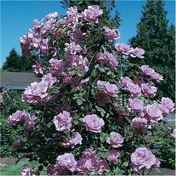 У цієї троянди незвичайне бузково- лілове забарвлення. Дуже великі лілово - бузкові квітки з сріблястим відтінком, формуються по одному і в кистях по 3-5 квітки. Аромат легкий, класичний рожевий. Цвітіння щедре і тривале.