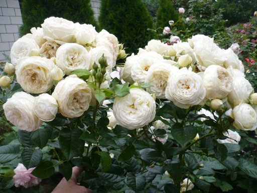 Хороша міцна троянда. Дуже швидко формує широкий округлий кущ, листя глянсове, блискуче, темно-зелене. Троянда добре зимує. Квіти невеликі, вершково-білого кольору, у великих та дуже великих суцвіттях. Цвітіння практично без перерви, дуже рясне. Друга хвиля цвітіння - не менш рясна, ніж перша. Від дощу найчастіше з'являються ластовиння, відцвітає досить чисто. Легкий аромат присутній у прохолодну погоду.