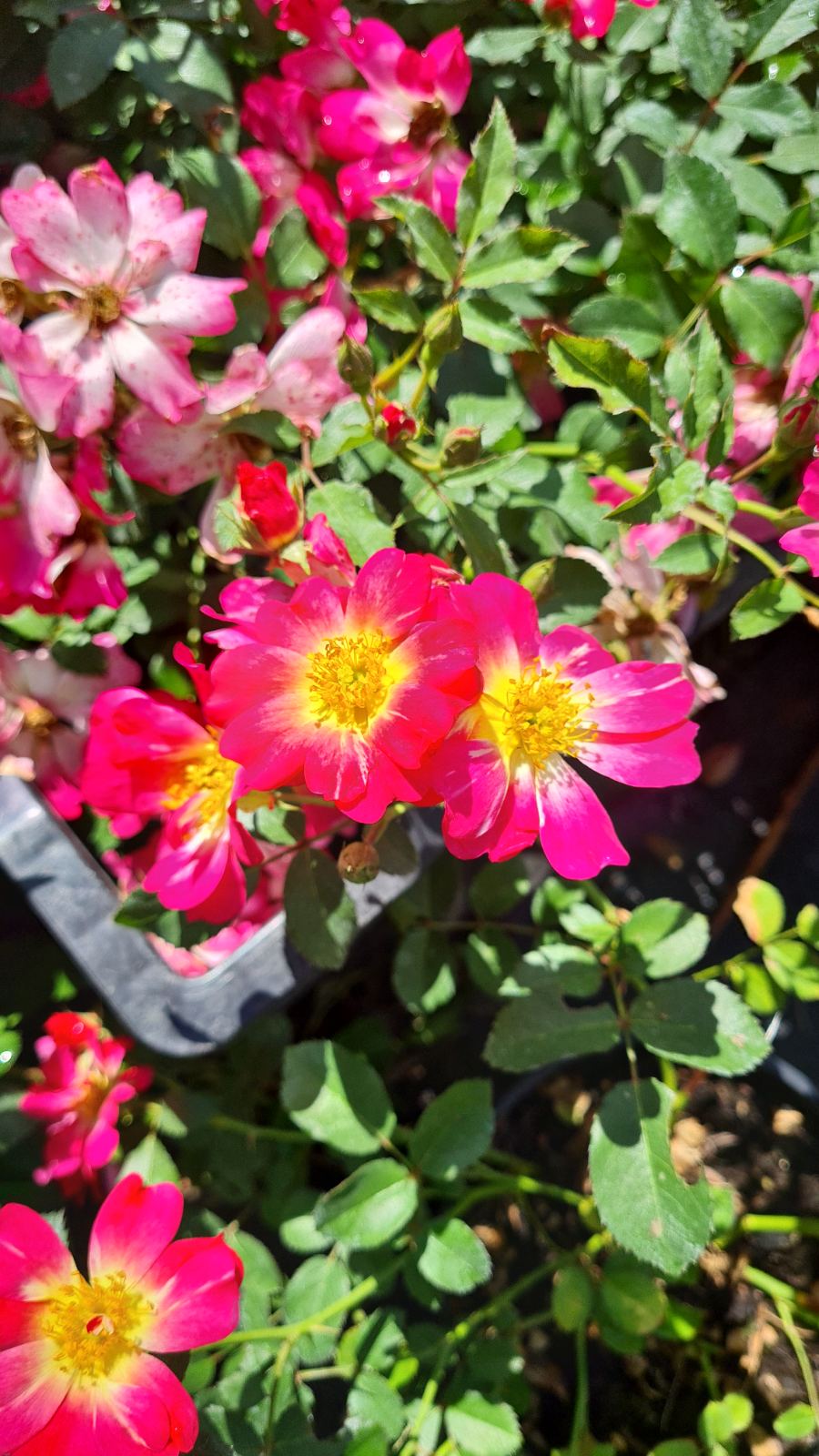 Цвітіння дуже рясне, практично безперервне протягом усього сезону. Кущі дуже густі, розлогі, при висоті до 40 сантиметрів, розростаються до 70 – 80 см завширшки. Квіти прості (5 пелюсток), рожево-білі з жовтим (за рахунок тичинок) центром.